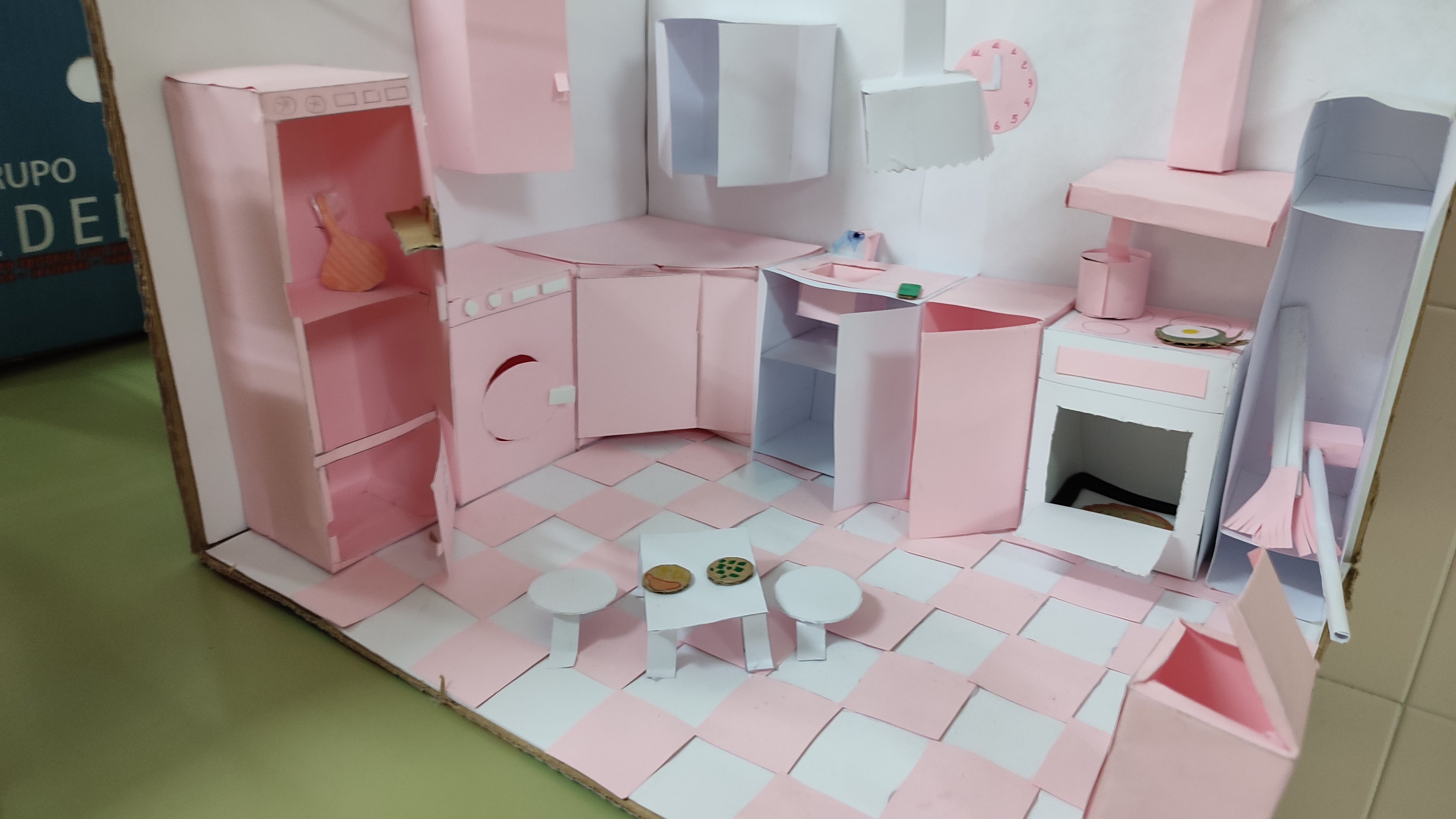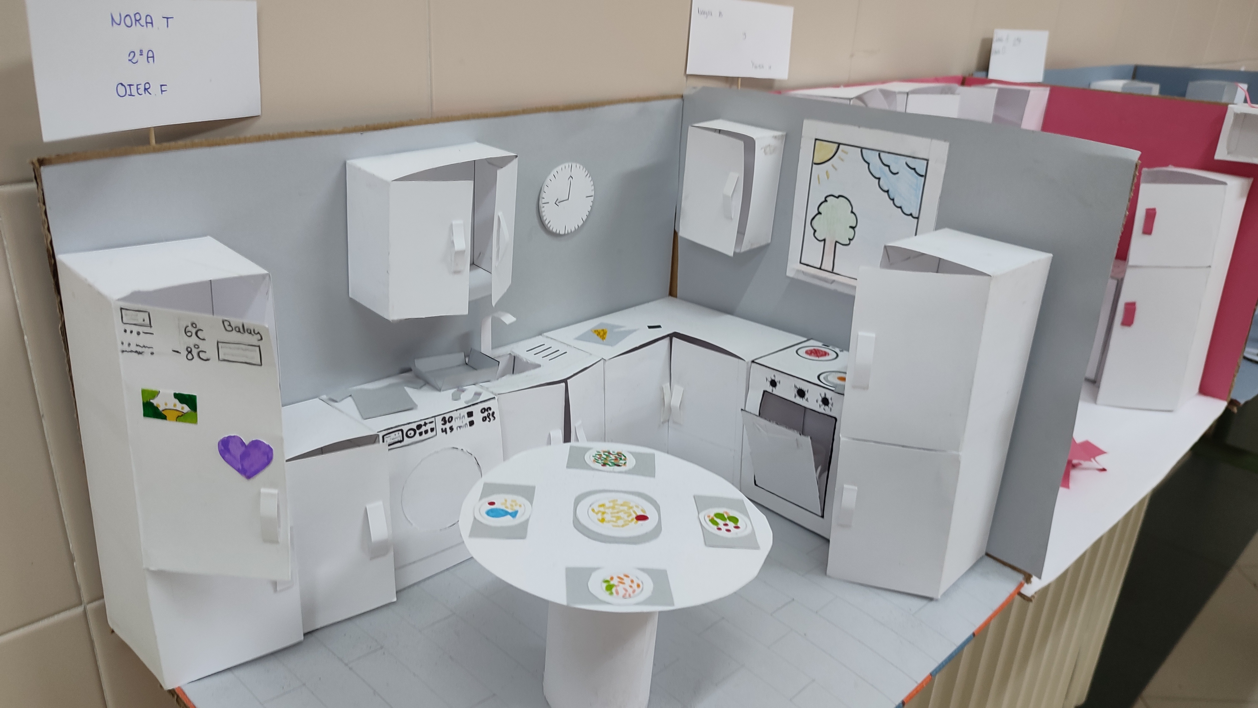 Los alumnos de 2º de ESO han realizado unas maquetas chulísimas de cocinas a escala 1:10 . Se les facilitó las medidas reales y ellos tuvieron que hacer el desarrollo del mobiliario en dos dimensiones. A partir de ahí dejaron volar su creatividad obteniendo muy buenos resultados: