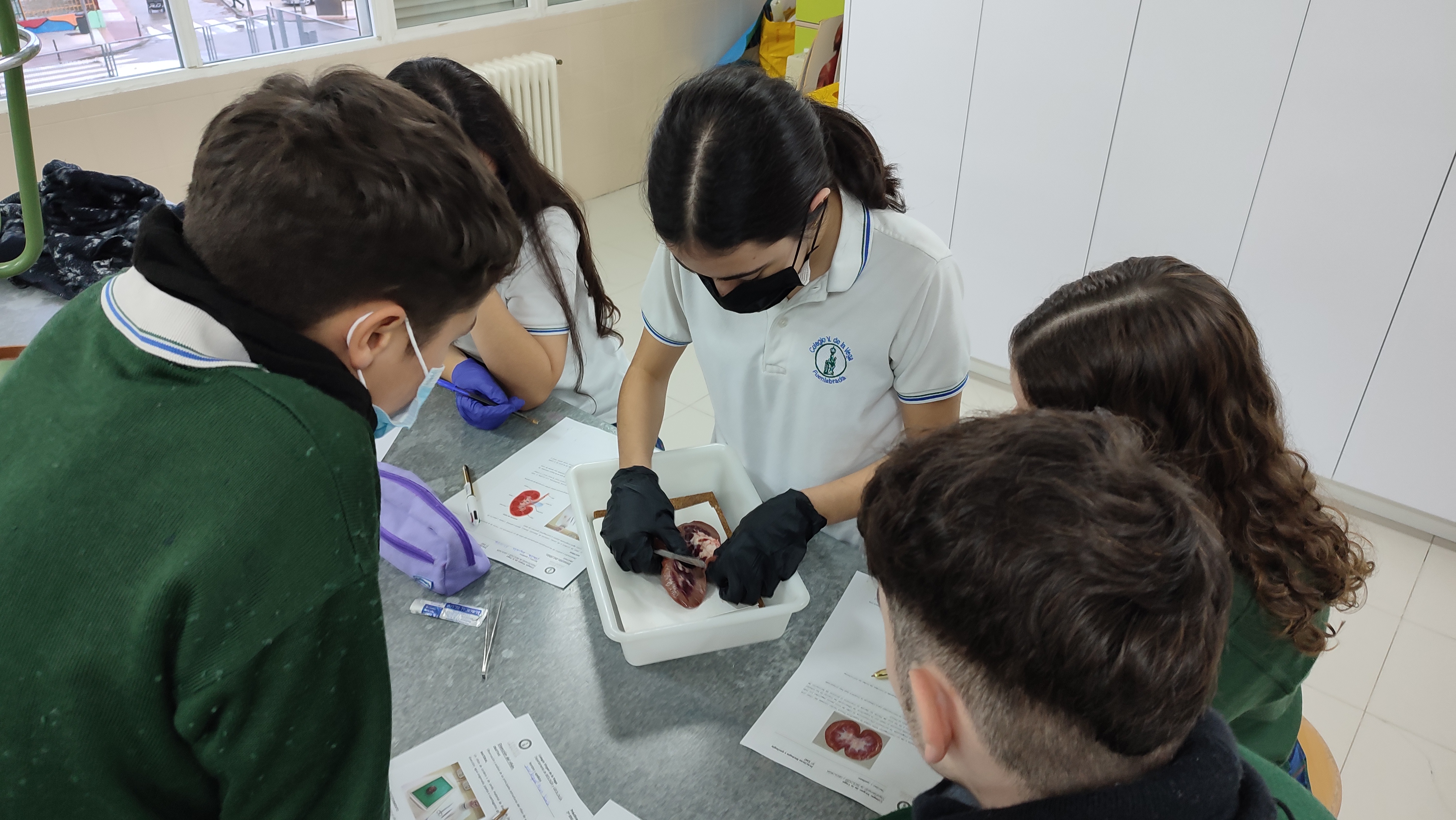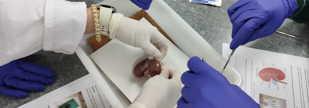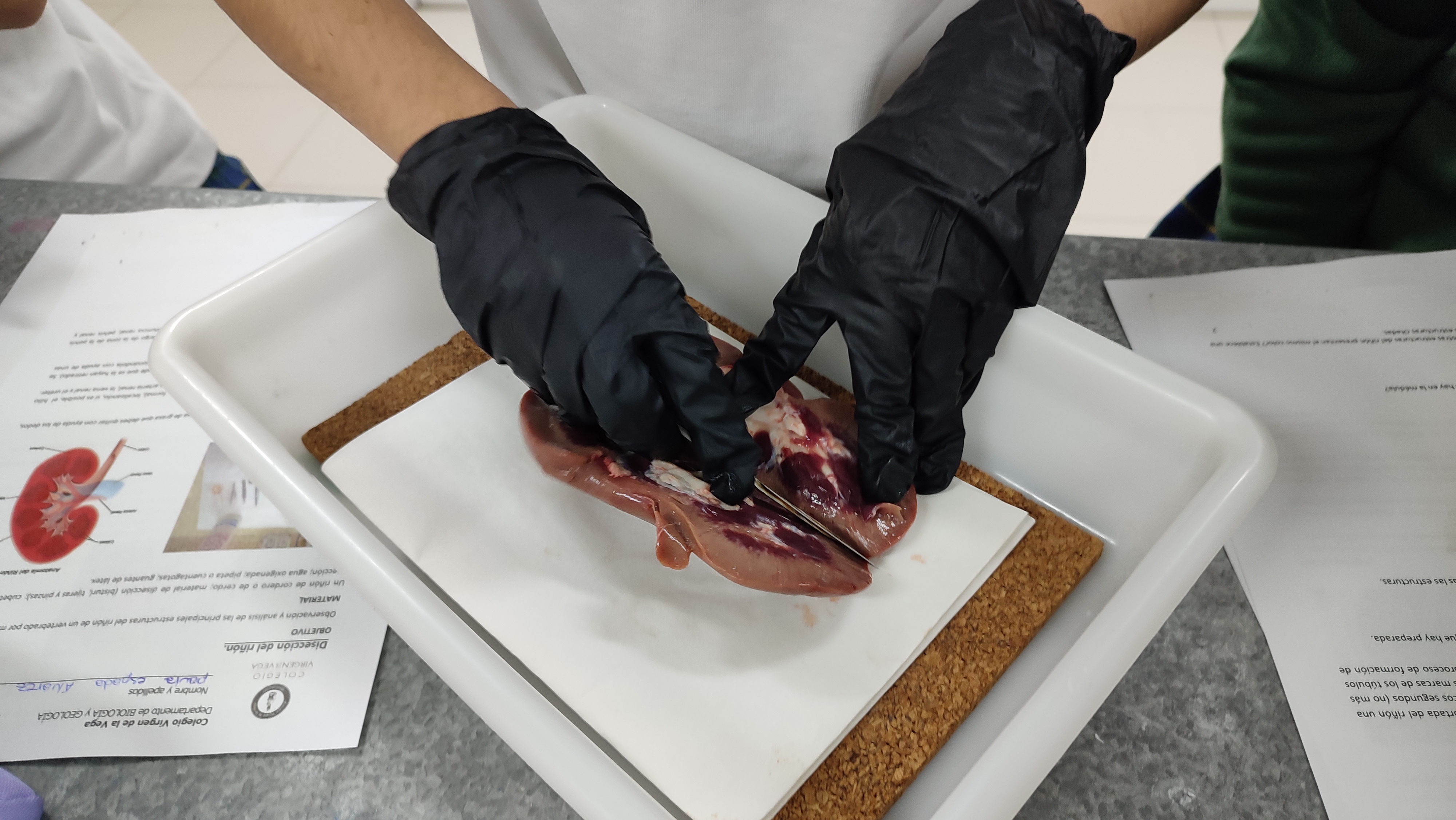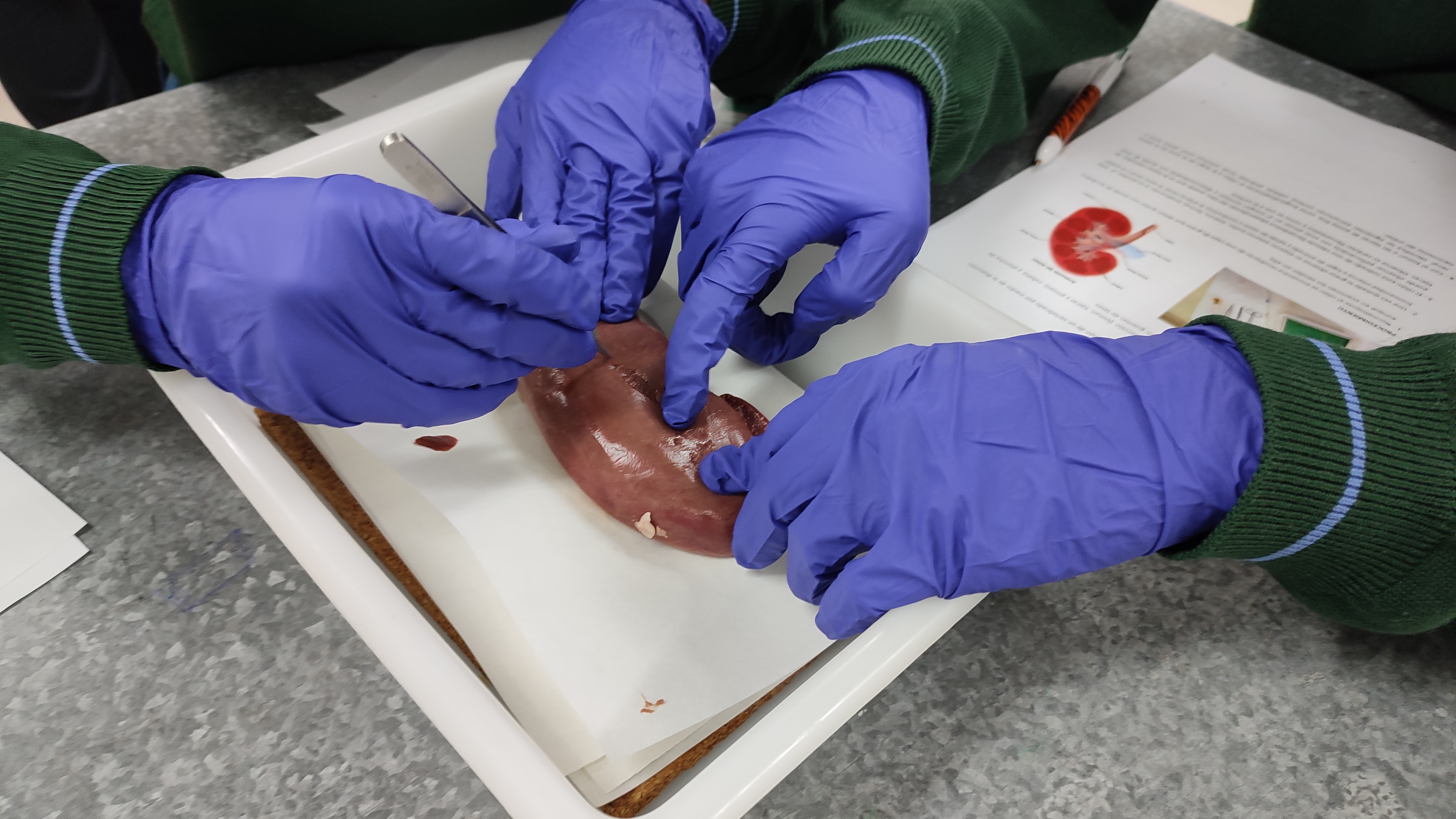 Para aprender cómo es un riñón humano, lo más parecido es estudiarlo a partir de otros animales vertebrados. En su caso, han sido de cerdo (parecido en tamaño y estructuras) y de cordero (fáciles de conseguir con más estructuras).