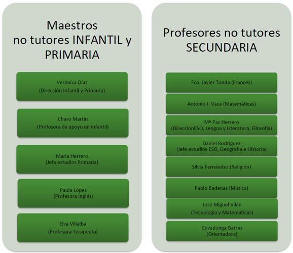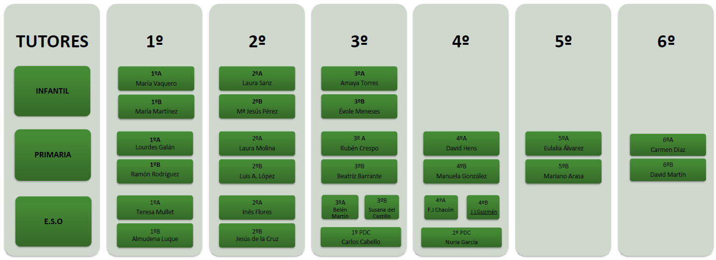 El organigrama del centro es totalmente jerarquizado y lo encabeza la dirección como representante del Equipo Directivo del Colegio.