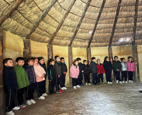 Nuestro paseo nos llevó a poder ver cómo era dónde vivían. Las cuevas de las que habíamos oído donde vivían primero, cuando eran nómadas. Pasado el tiempo montamos tipis o tiendas hechos con las pieles de los animales que cazaban y por último las chozas que construían con barro y paja. Así ya podían vivir unos junto a otros formando así los primeros poblados.