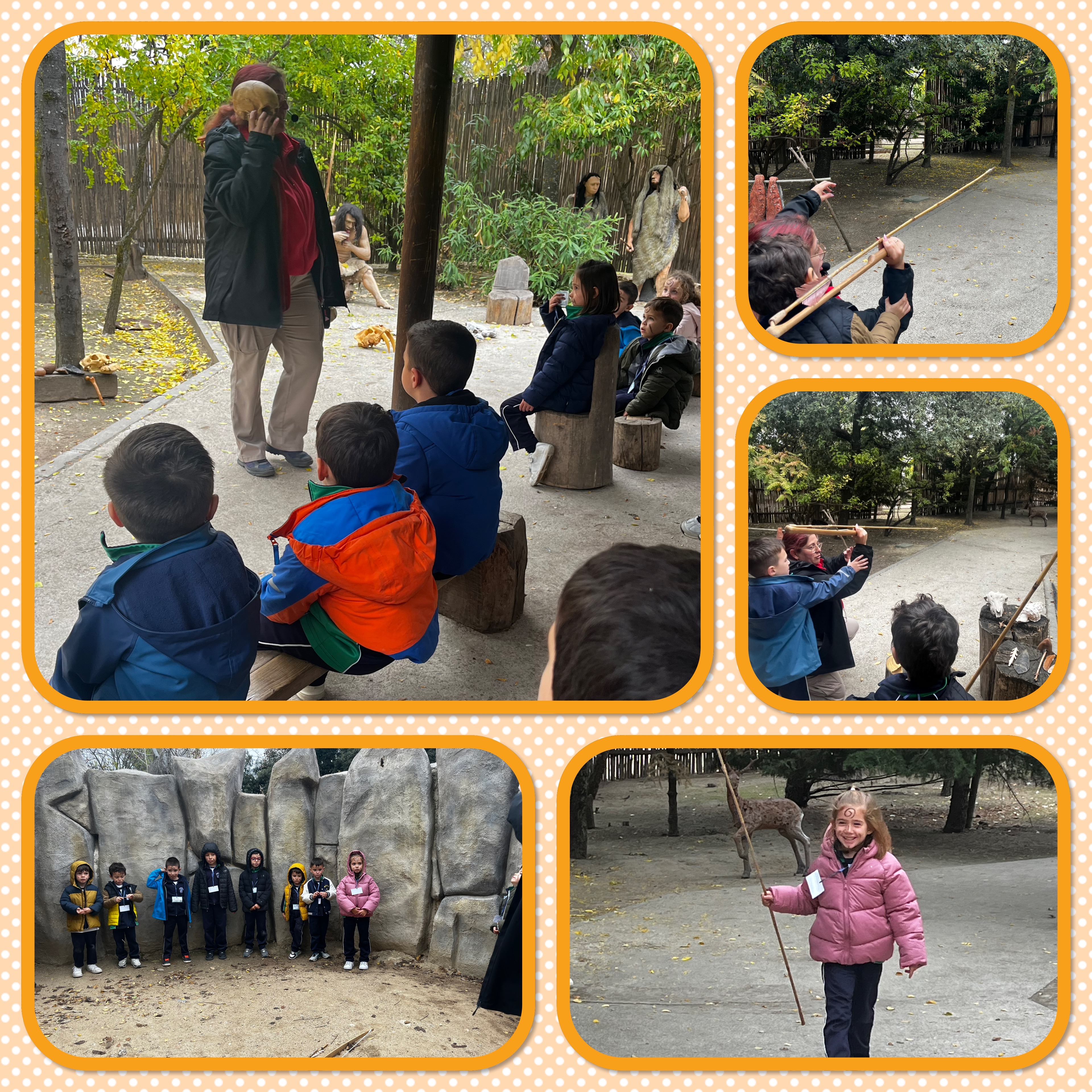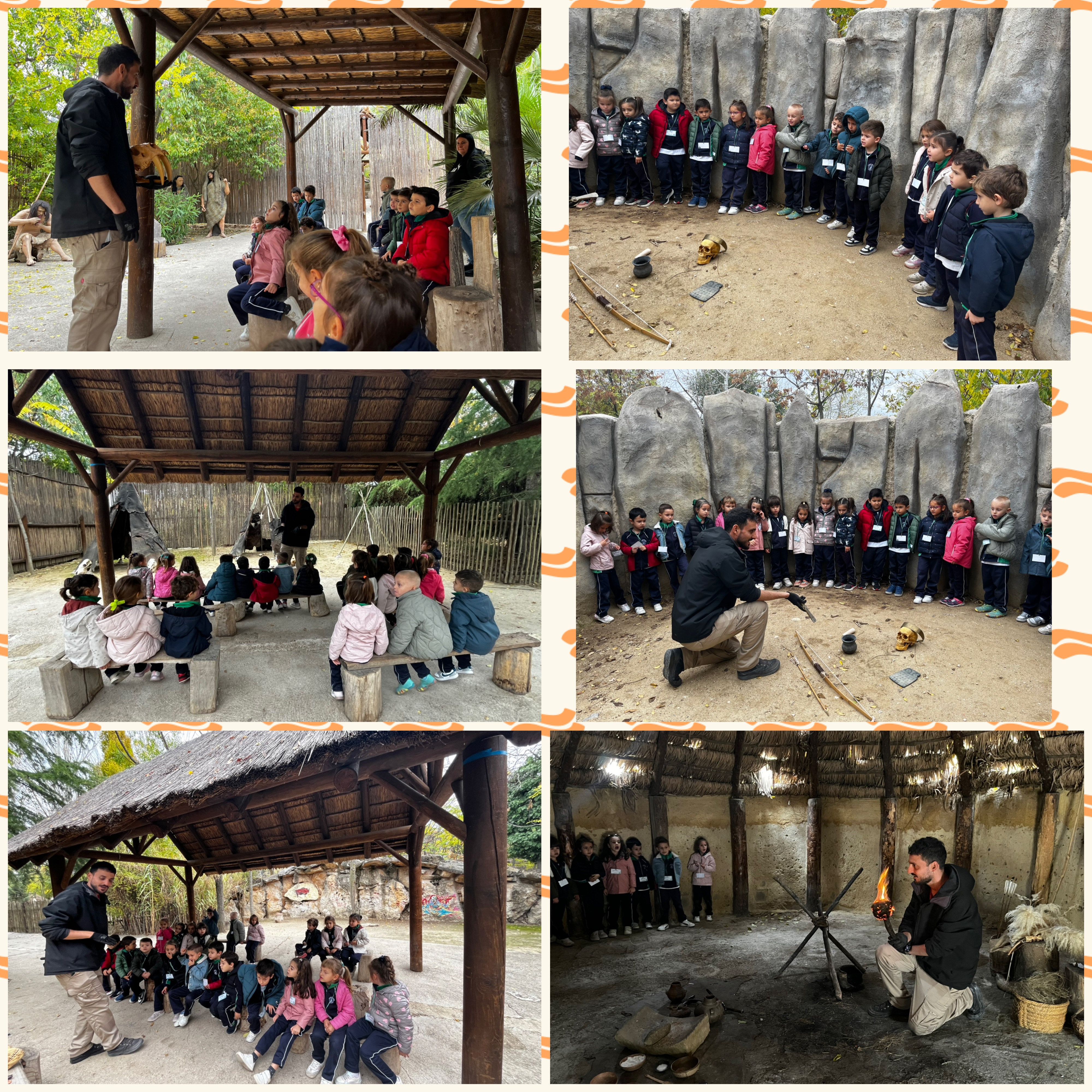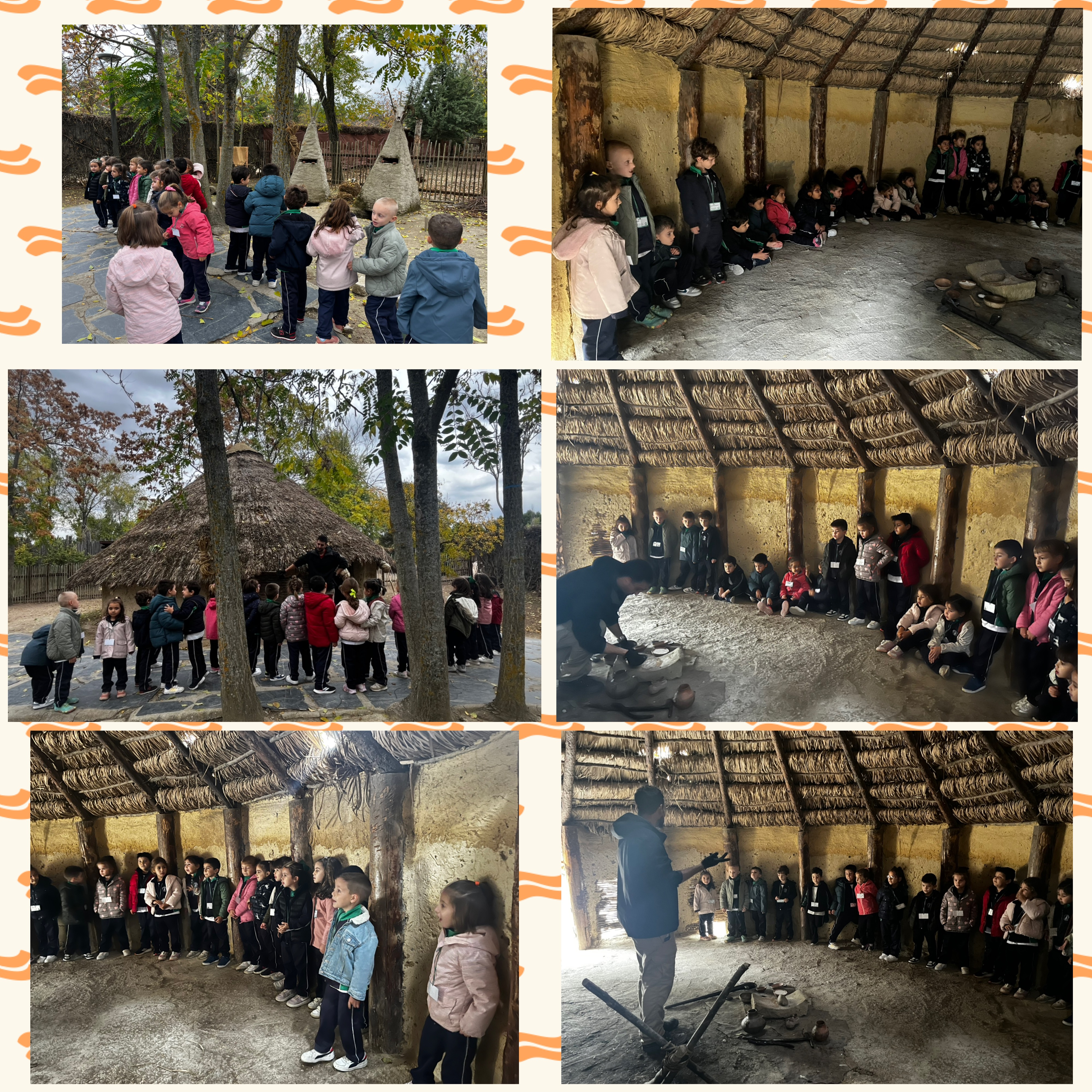 Nuestro paseo nos llevó a poder ver cómo era dónde vivían. Las cuevas de las que habíamos oído donde vivían primero, cuando eran nómadas. Pasado el tiempo montamos tipis o tiendas hechos con las pieles de los animales que cazaban y por último las chozas que construían con barro y paja. Así ya podían vivir unos junto a otros formando así los primeros poblados.