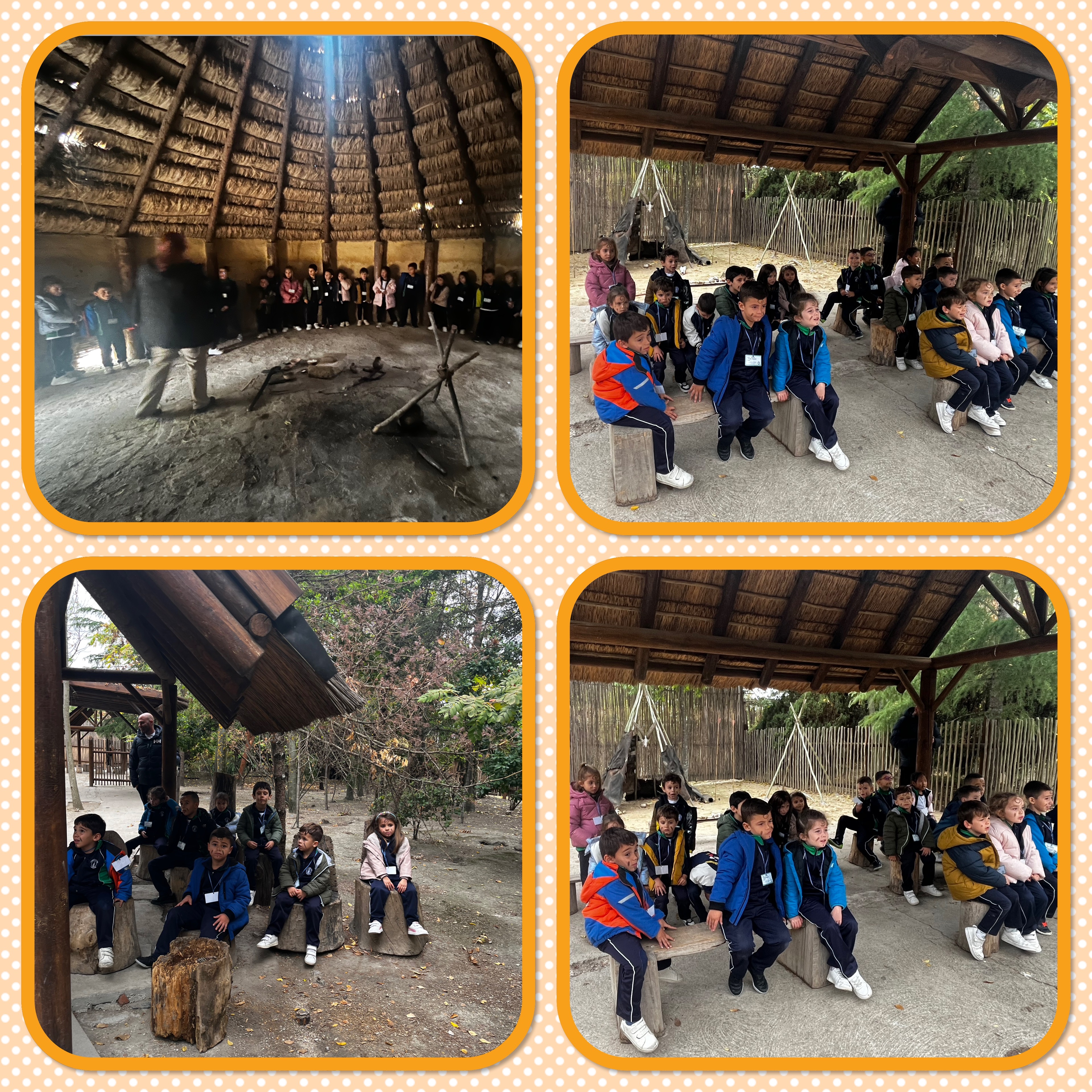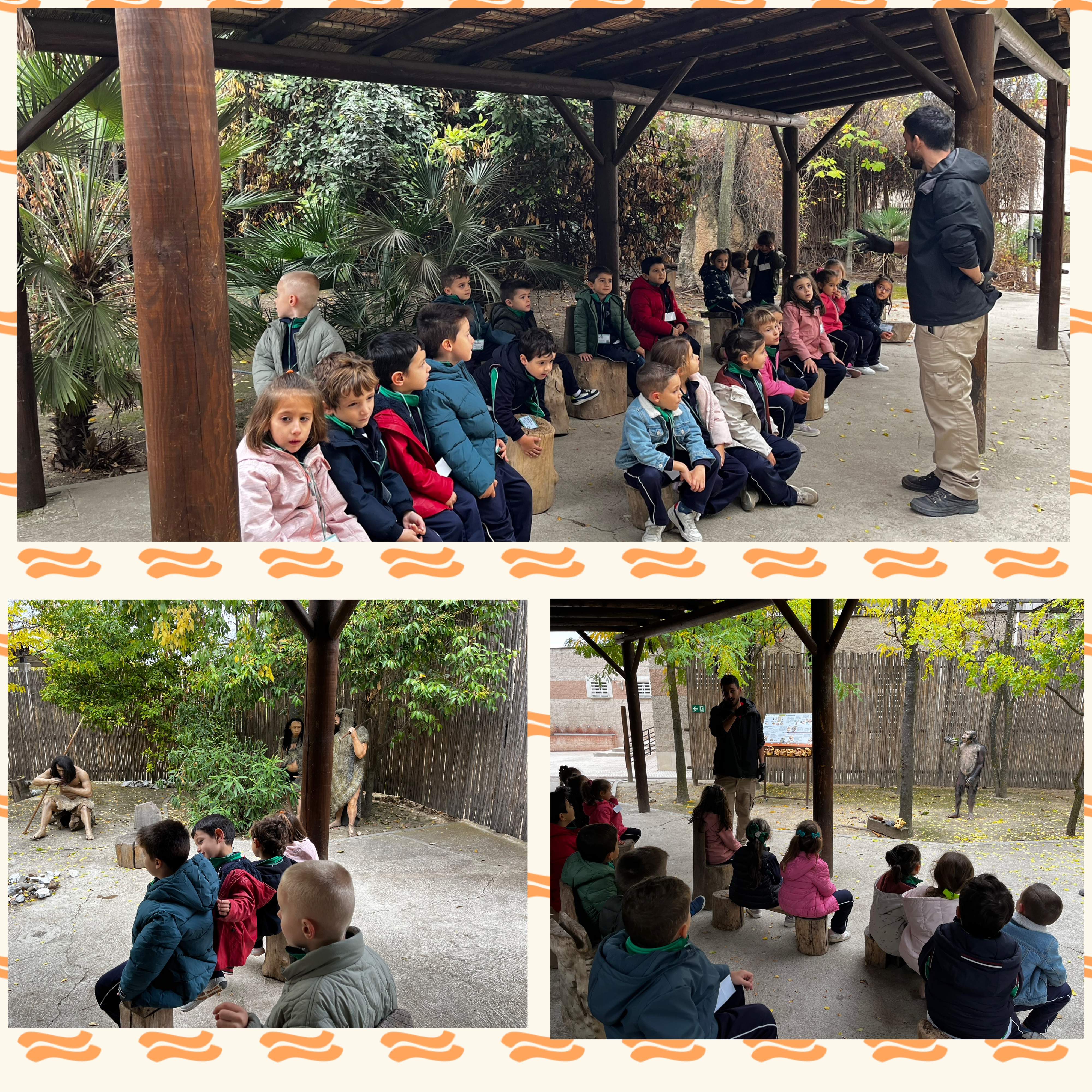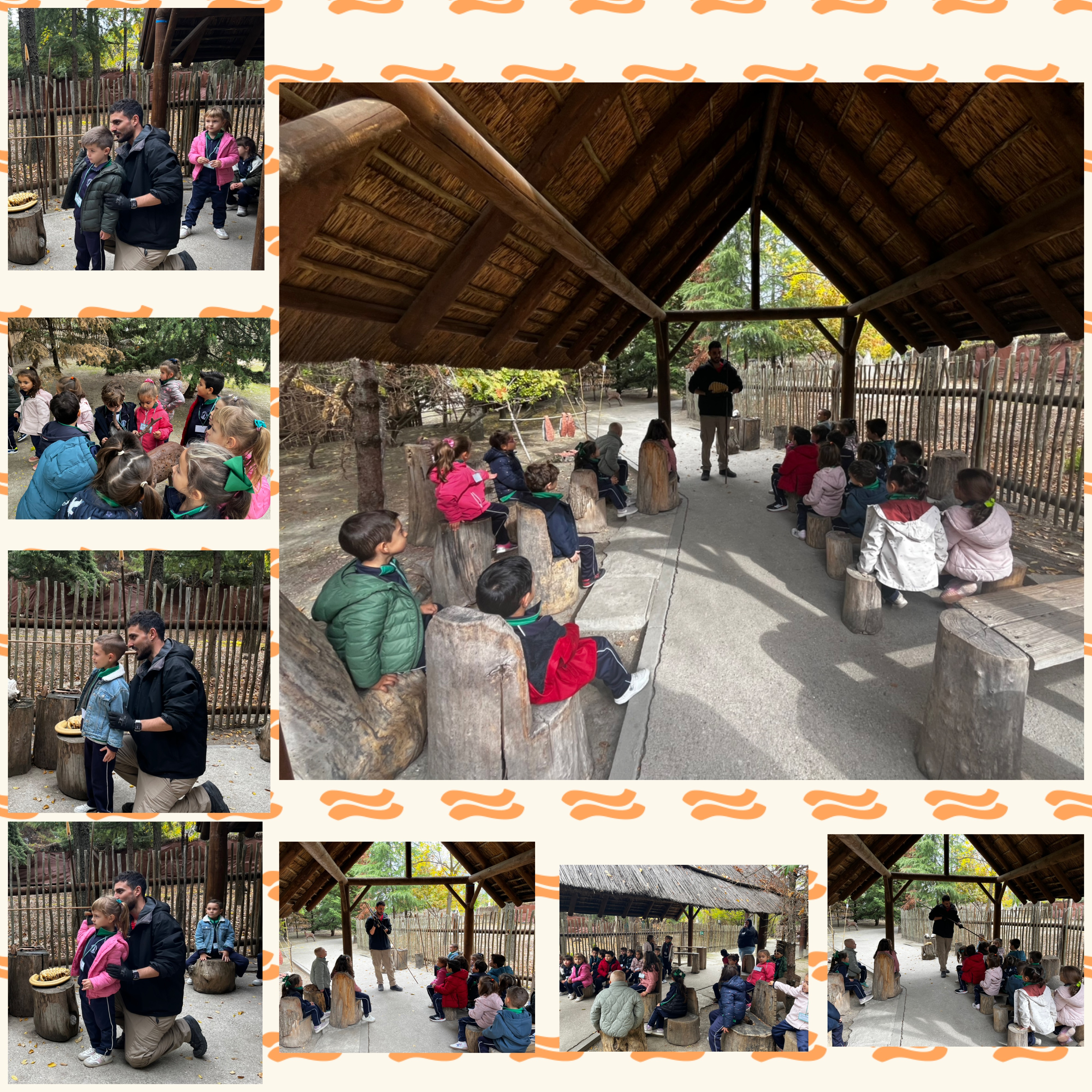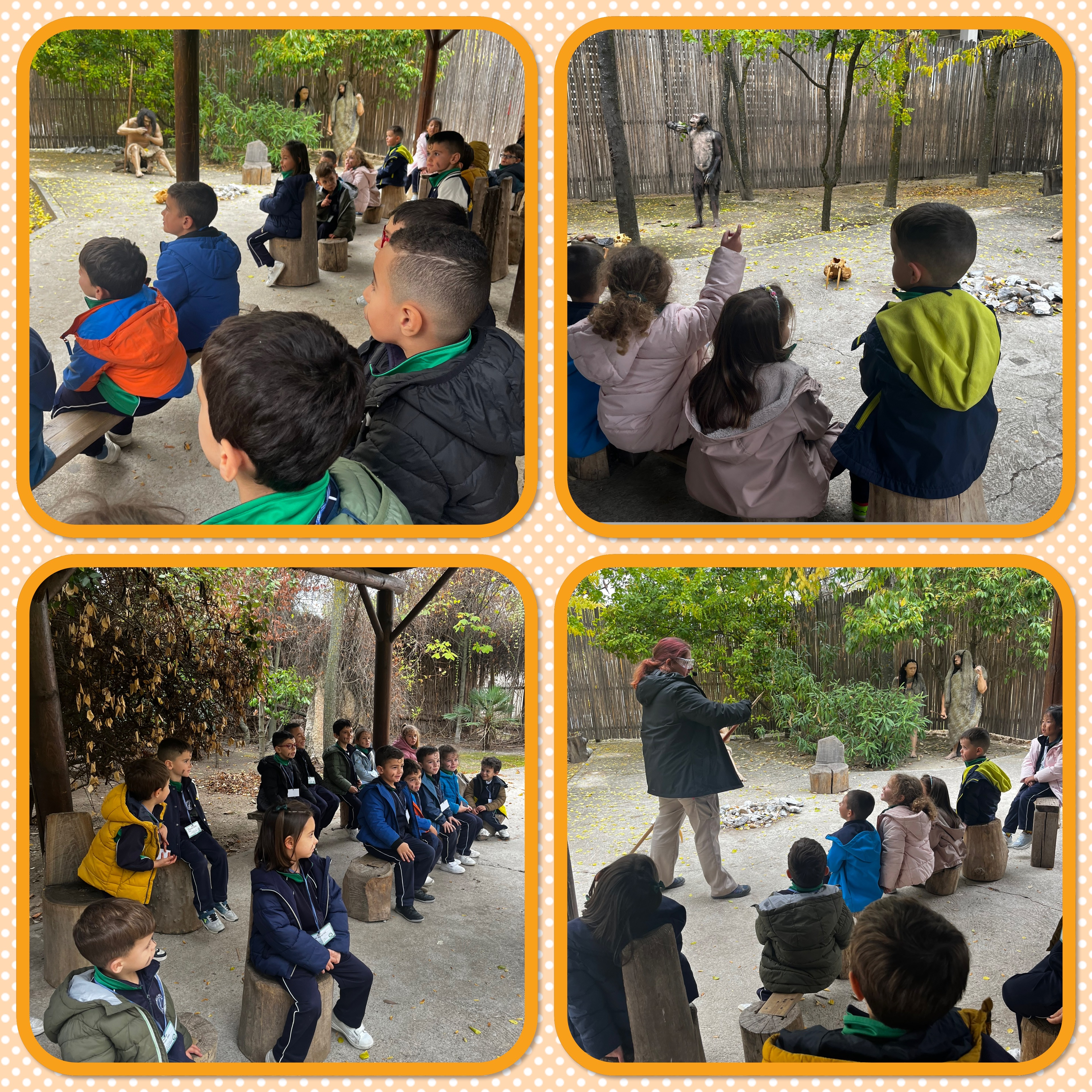 Nuestro paseo nos llevó a poder ver cómo era dónde vivían. Las cuevas de las que habíamos oído donde vivían primero, cuando eran nómadas. Pasado el tiempo montamos tipis o tiendas hechos con las pieles de los animales que cazaban y por último las chozas que construían con barro y paja. Así ya podían vivir unos junto a otros formando así los primeros poblados.